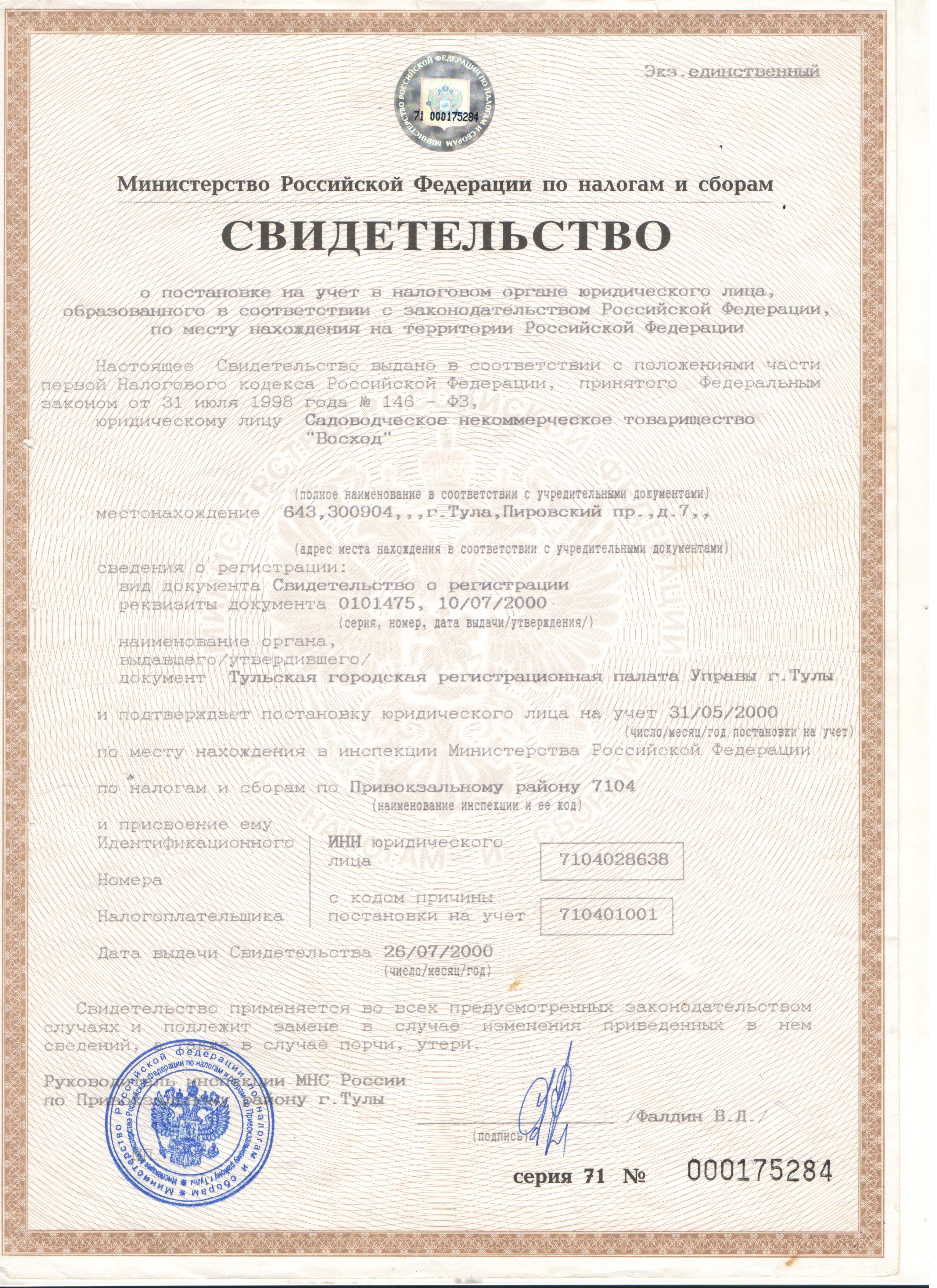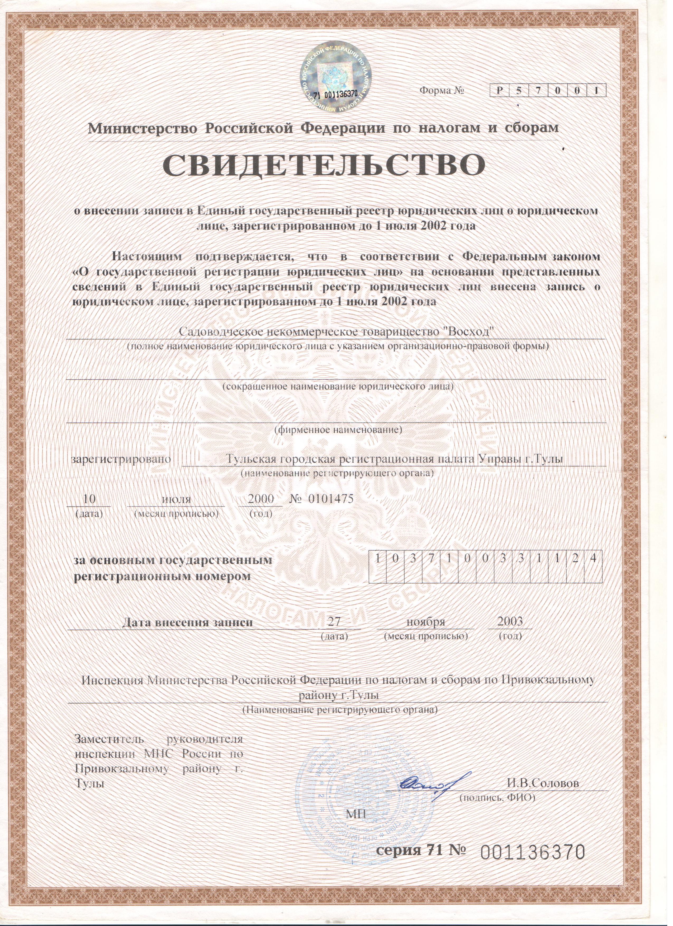 ИНН, ОГРН, Свидетельство о регистрации